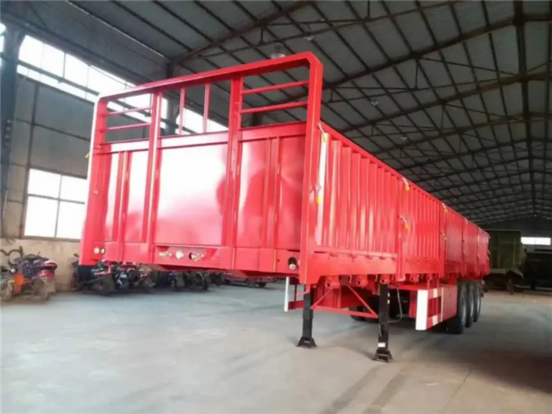 3 Axle Drop Side Trailer is adds detachable railings to a flatbed, with a height of 60/80/120 cm and customizable height. There are corrugated railings around the rail car to prevent goods from falling during transportation. The types of goods transported are very diverse.